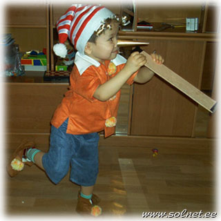 Надеваем розовые штанишки и рубашку (трико, комбинезон). Теперь нужно изготовить хвостик и ушки. Для этого лучше взять твердый материал, например, проволоку, обернутую тканью. Вырезаем и прикрепляем ее к штанам, заворачиваем крючком - это хвост. Из этого же материала шьем маленькую шапочку со стоячими ушками. Теперь нужно нарисовать мордочку - носик и усики. Это можно сделать специальным гримом. И последний штрих - одеваем на ноги розовые тапки в виде поросячьих копыток (такие можно купить в магазине).