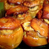 | ЗАПЕЧЕННЫЕ ЯБЛОКИ С БАНАНАМИ 1. Для запекания годятся любые крупные яблоки, но вкуснее всего из российских сортов получаются антоновка и семеринка. Отрежьте верхнюю часть у яблок, вырежьте у них сердцевину, не повредив «донца». 2. Приготовьте начинку из нарезанных колечками бананов и варенья, например абрикосового (или любого другого, по вашему вкусу), положите начинку внутрь и прикройте яблоки «крышечкой». 3. Выложите фаршированные яблоки на плотную или свернутую вдвое фольгу, прикройте сверху другим листом фольги и плотно заверните края. Проделайте вилкой сверху небольшие отверстия. 4. Аккуратно перенесите ваш «пакет» с яблоками на разогретую решетку и запекайте на несильном жару в течение 25 30 минут.